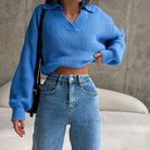 Designed with an oversized fit, it features a deep polo collar and delicate ribbing at the sleeves, neckline, and hem.