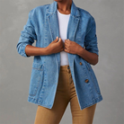 Its relaxed fit blurs the boundary between casual and formal wear, while maintaining traditional tailoring details.