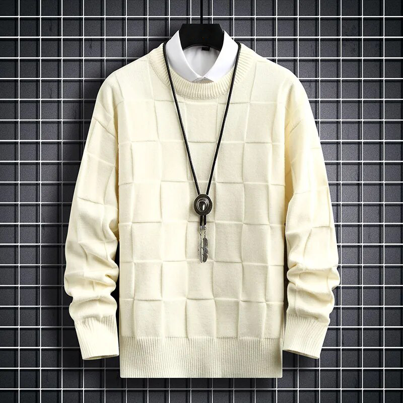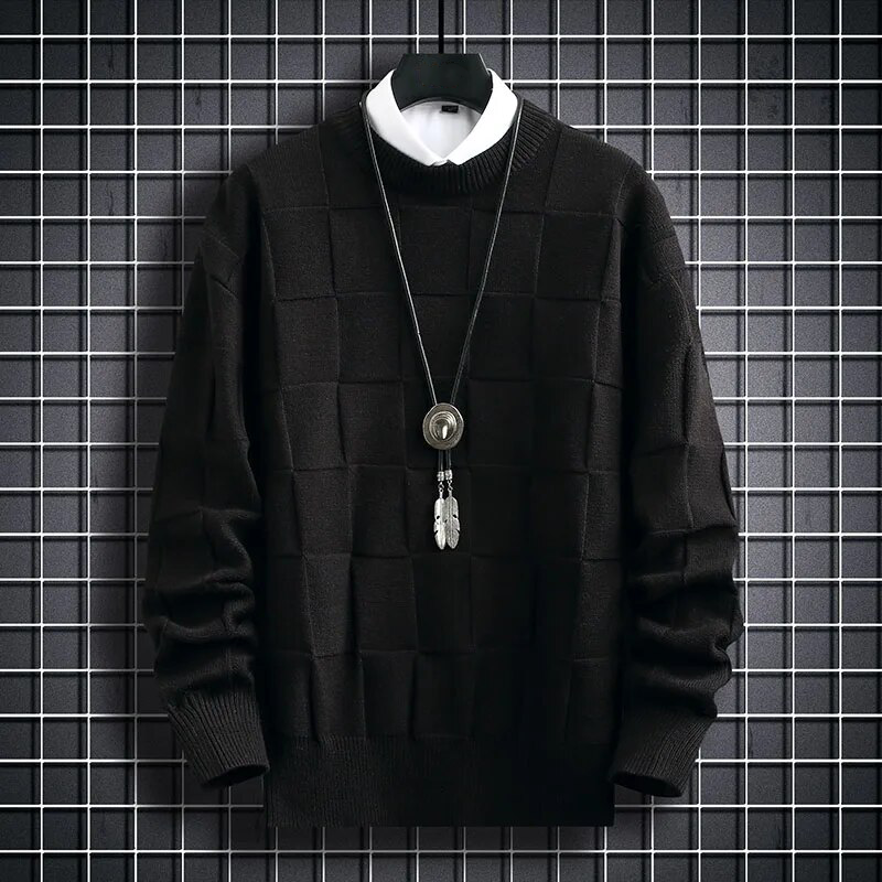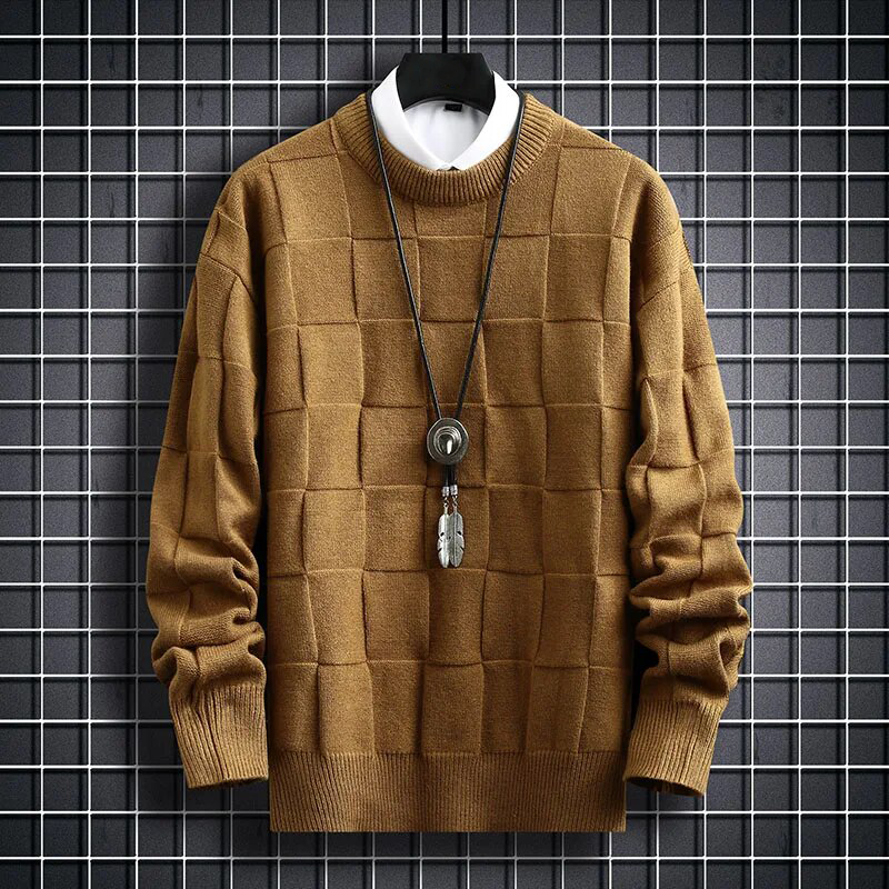 Pushing the boundaries of texture, we adorned this piece with a tactile Jacquard plaid knit, turning a classic staple into a buttery-soft statement of pure comfort.