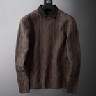 The subtle plaid pattern throughout adds a touch of distinctiveness to the casual design, setting it apart from ordinary sweaters.
