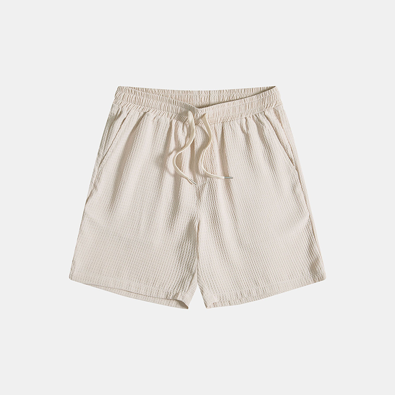 Delivering both functionality and comfort, the shorts boast convenient side pockets and delicate drawstrings for a customized, snug fit. Notably, the waffle knit texture of the fabric adds a touch of sophistication and irresistible allure to the overall aesthetic