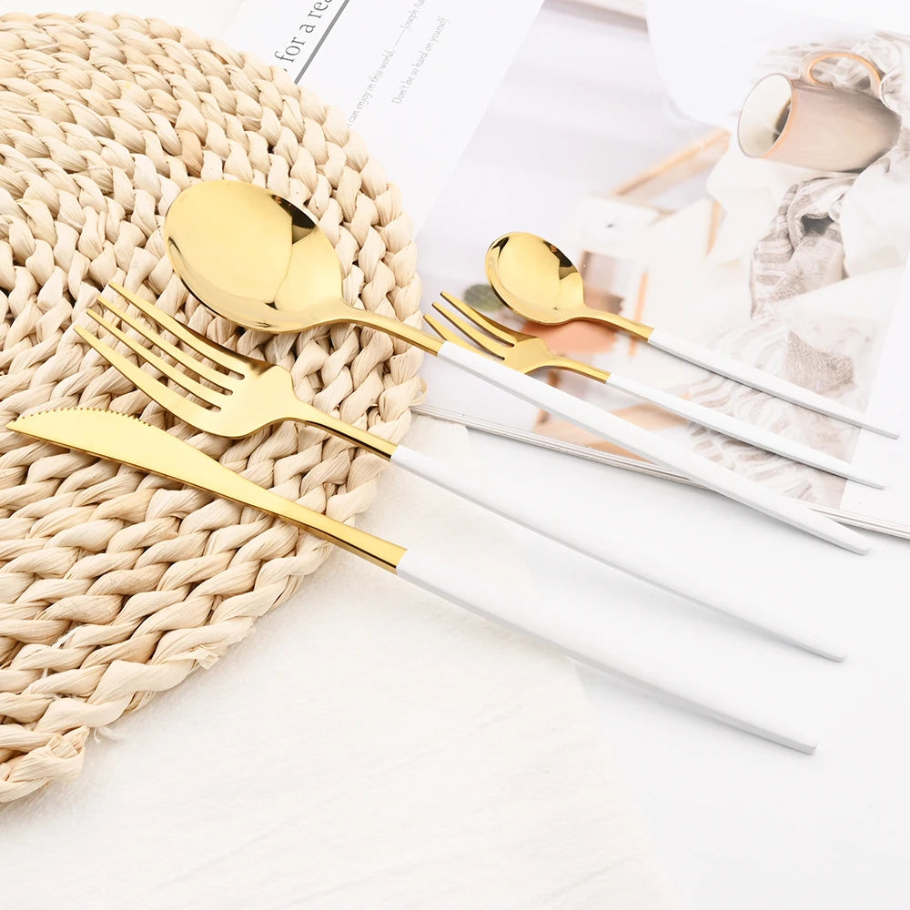MODERN WHITE GOLD CUTLERY 24 PCS