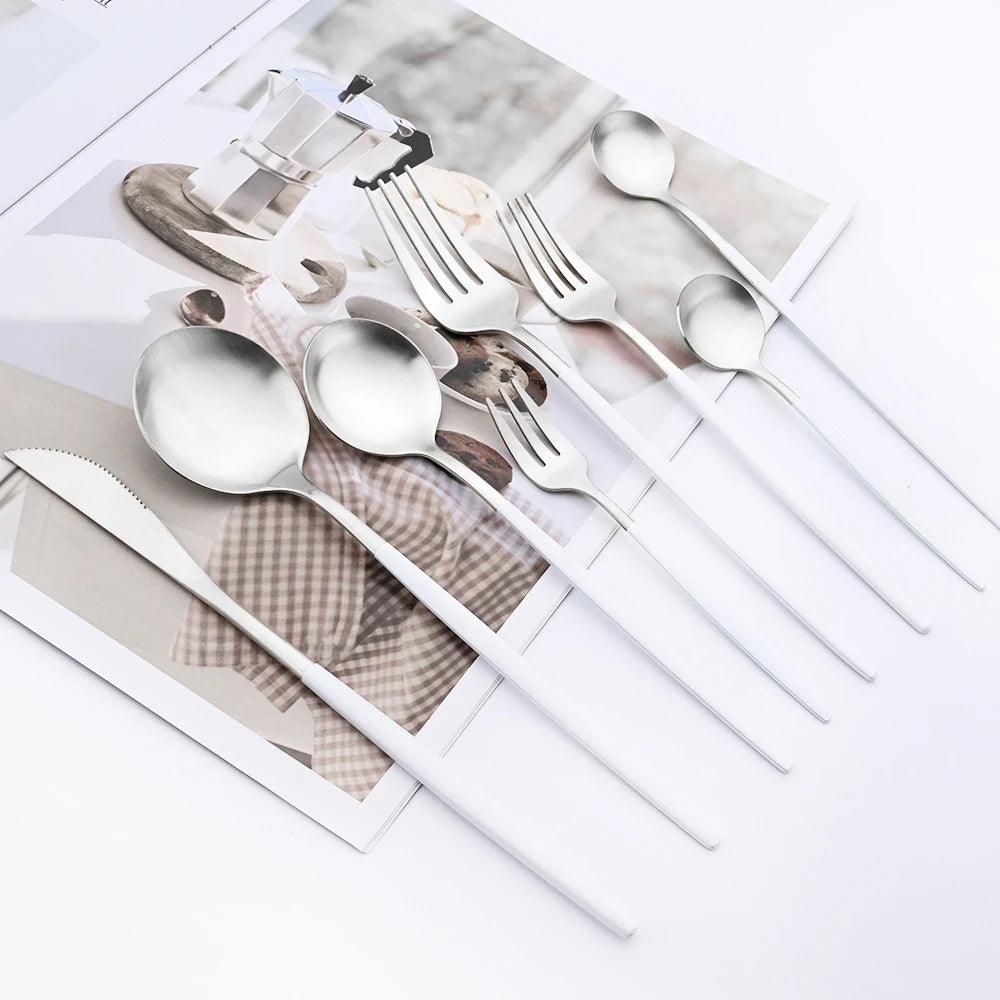 MODERN WHITE SILVER CUTLERY 24 PCS