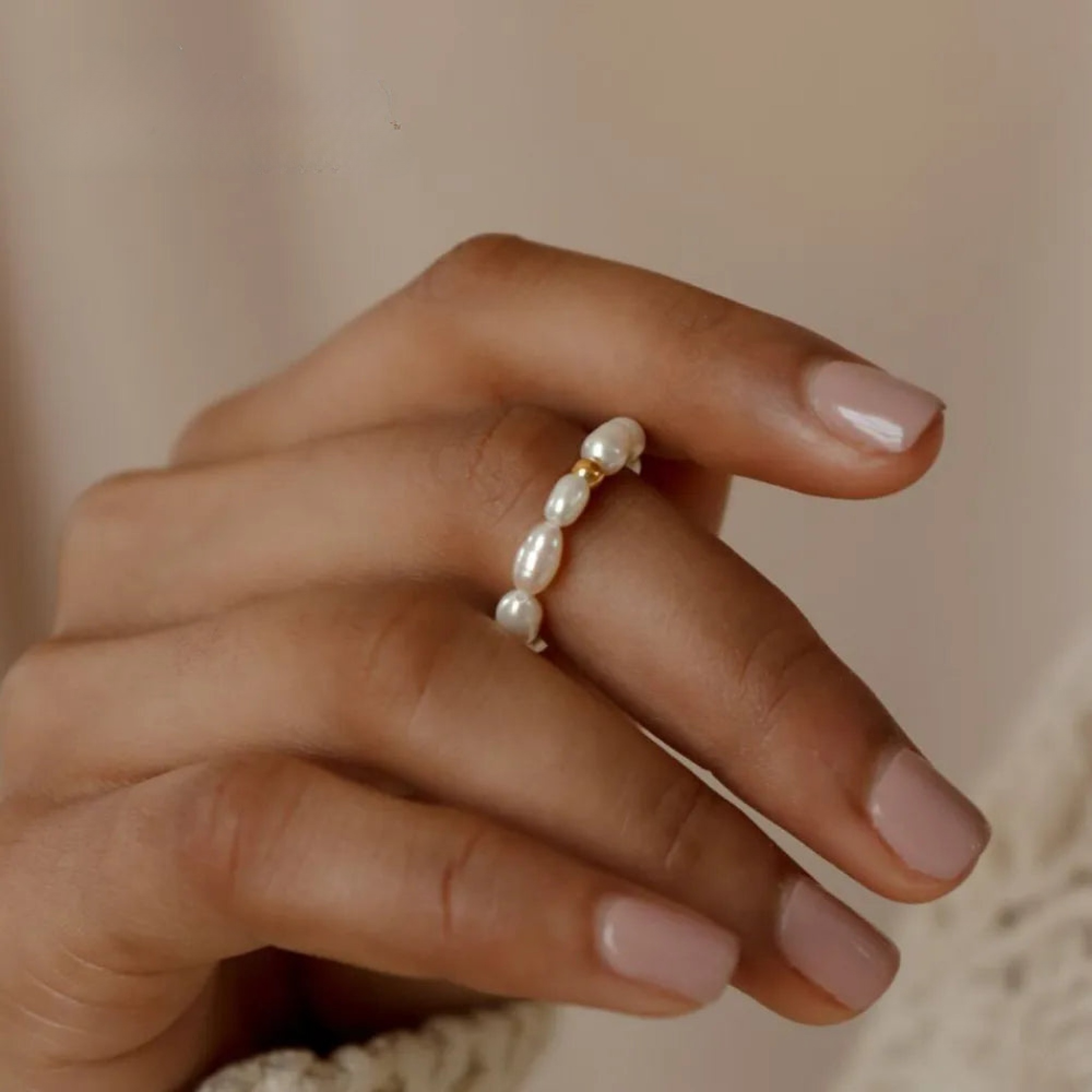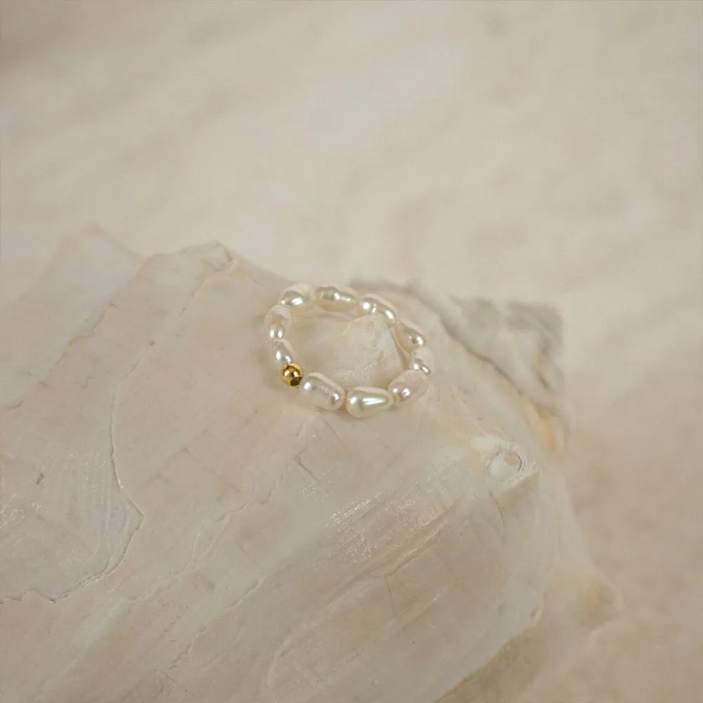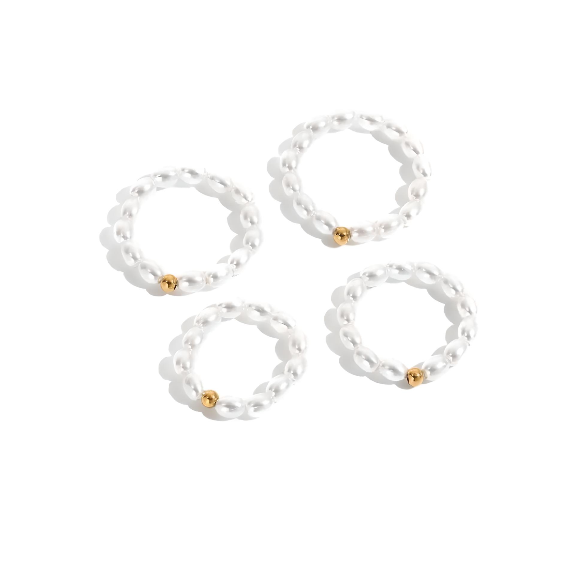 Craft a statement of sophistication with the Jeneve Pearl Ring, a blend of contemporary style and classic allure. This elegant piece is expertly crafted from stainless steel and adorned with a simulated pearl that captures the timeless beauty of genuine pearls. Plated in a stunning gold color, its 3mm band exudes subtle elegance that's perfect for an engagement, office wear, or school events.