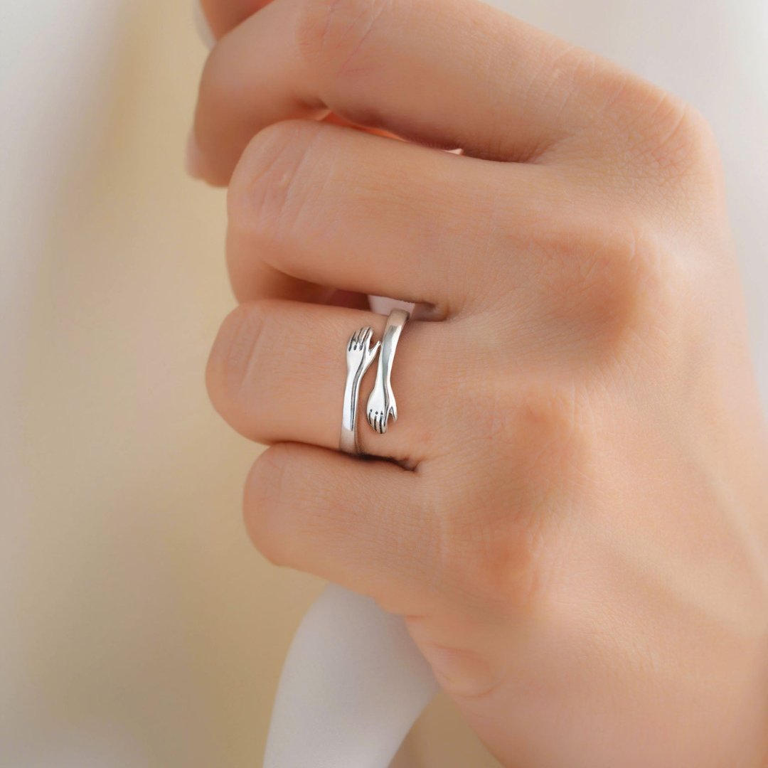 The Embrace Ring, crafted from Sterling Silver, embodies the essence of cherished connections, symbolizing the depth of meaning attributed to individuals or experiences in your life.