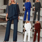 Elevate your style and confidence with Angie for women. This two-piece set is both comfortable and stylish, perfect for any occasion. With its trendy, off-the-shoulder design and elegant pants, you'll turn heads at any party or event.
