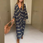 Unleash your inner bohemian goddess with the Bettina - Boho Stripe Long Sleeve Dress. This dress is more than just a garment; it's an expression of your carefree and adventurous spirit. Perfect for vacations, beach trips, or casual gatherings, it embodies the essence of summer with its airy silhouette and vibrant print.