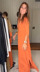 - Fluidand comfortable cut: Made to offer uncompromising comfort, the fluid cut adapts to different body shapes. The clean, elegant design of this long dress captures the essence of effortless beauty.