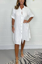 Versatile Design: Our dress features a classic collar, button-down front, and a flattering waist tie detail, combining timeless style with modern sophistication. Whether you're running errands, attending a brunch, or heading to the office, the Julia dress effortlessly adapts to any setting.