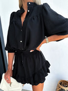 Enter the world of timeless elegance with the Shelley Set, a beautiful combination of a long-sleeved top and layered shorts. This set offers a perfect balance between sophistication and comfort, allowing you to effortlessly look chic and trendy whether you're spending a relaxing day at home or planning a casual outing with friends.