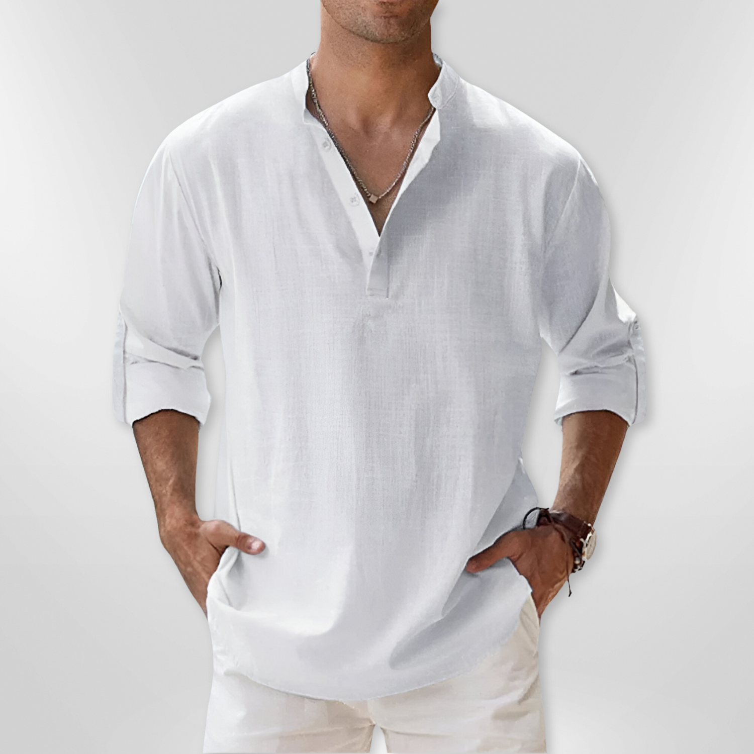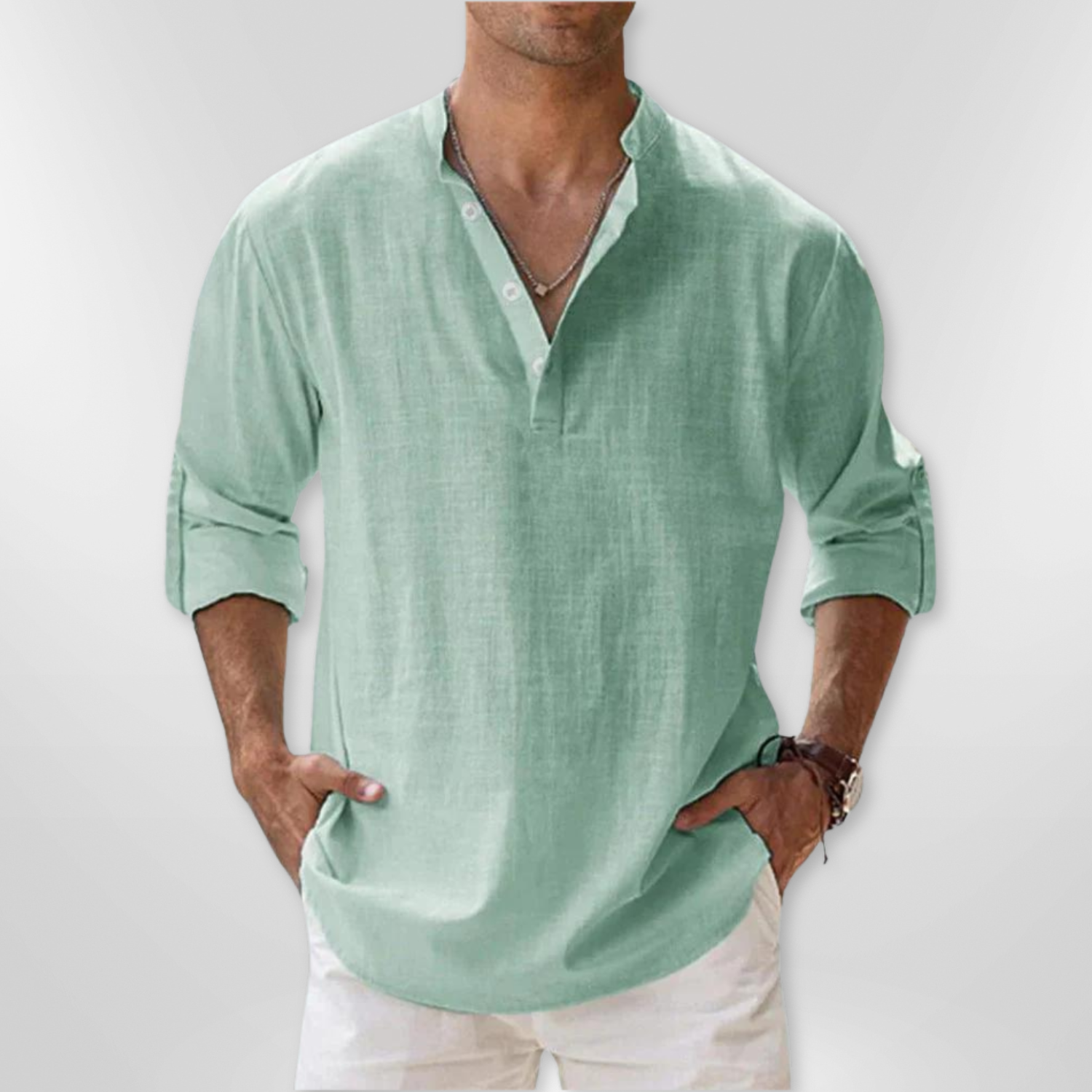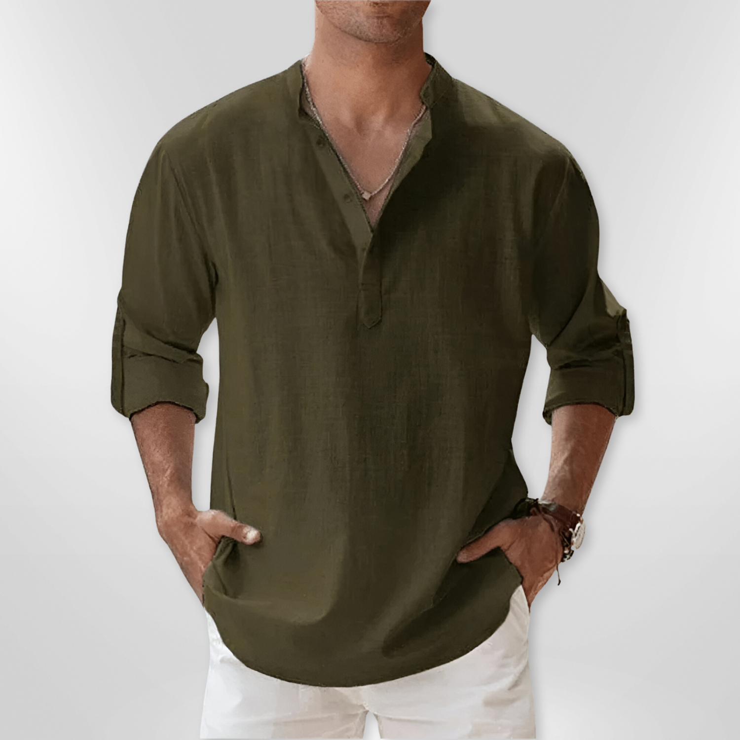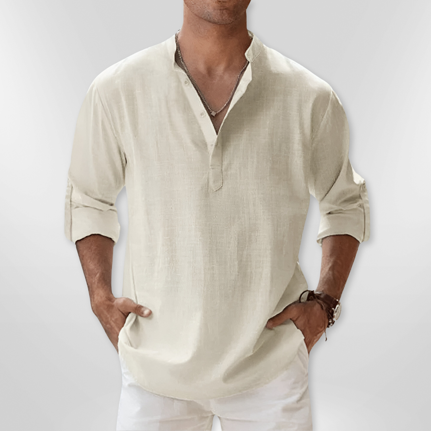 Linen Shirt with Mandarin Collar